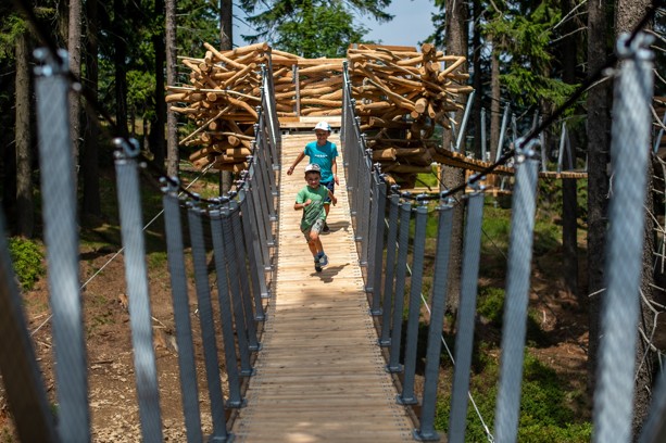 V letě se určitě zastavte v Baldově světě v Mladých Bukách. Letní atratrakce ve sportovním areálu nabízí bohaté vyžití. Na kopcai je dokonce 3D bludiště – třípatrová atrakce, v níž se pohybujete uprostřed zasíťovaného prostoru, který obsahuje 14 přestupních domečků, 13 visutých lávek s překážkami a cestu dolů točitým tobogánem. Můžete se těšit na krásné výhledy na hřebeny Krkonoš. Vaše děti kromě 3D bludiště potěší mnoho dalších atrakcí. Je tu k dispozici bazén, brouzdaliště, bungee trampolíny, vzduchová trampolína, houpačky i síťová loď. Děti zde mohou kreslit na tabule nebo dovádět ve vodním světě s fontánami, mlýnem a mlýnskými koly. Svezou se na letním tubingu, projdou Čertovskou stezkou nebo stezkou Poznávej přírodu s Baldou. Více zde