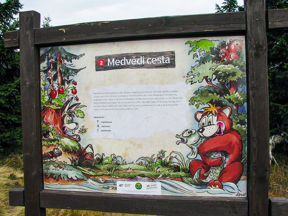 Kde jinde byste měli narazit na medvědy než na Medvědíně! Naučná stezka Skiareálu Špindlerův Mlýn začíná u horní stanice lanové dráhy na Medvědíně, a protože nabízí úchvatné vyhlídky, je skvělým výletem pro všechny věkové kategorie. Rodiny s dětmi na ní navíc mohou soutěžit.