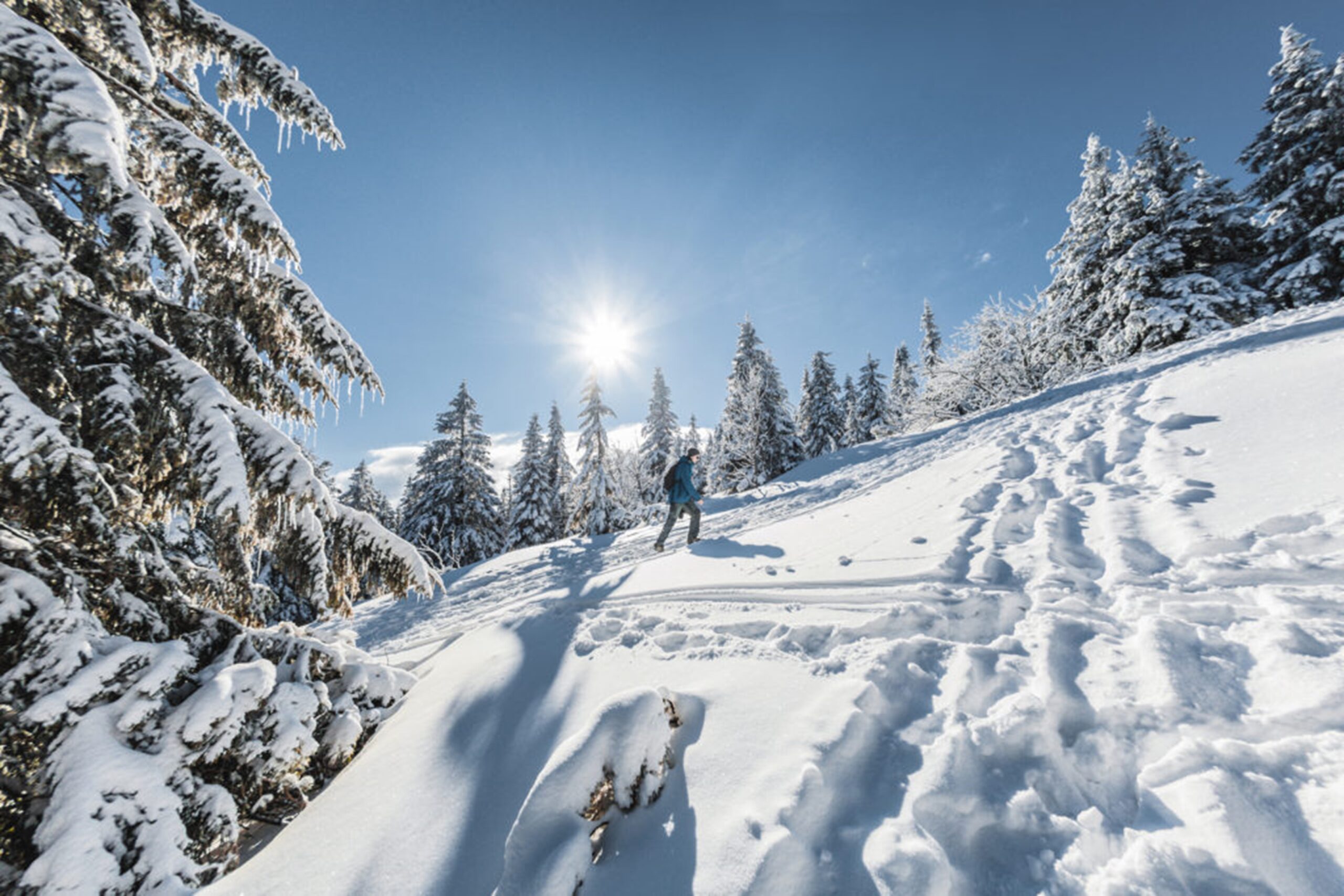 Z našeho resortu budete pokračovat 100 m nahoru po silnici, přejdete silnici k Infocentru a uvidíte pension Jeřabinka a pension Pomezní Bouda. Mezi nimi vede cesta, po které se vydáte. Následně přejdete opatrně napříč sjezdovkou a po 200 m dorazíte k rozcestníku Nad Pomezními Boudami (1070 m n. m.), který se tyčí na kraji lesa.